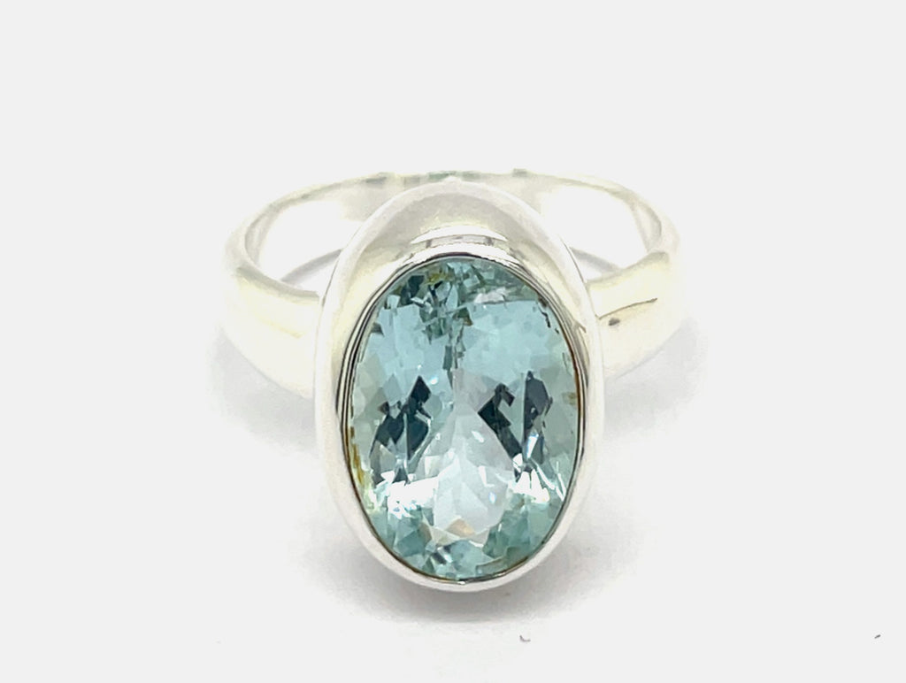 Kaleidoscope Oval Aquamarine Sterling Silver Ring