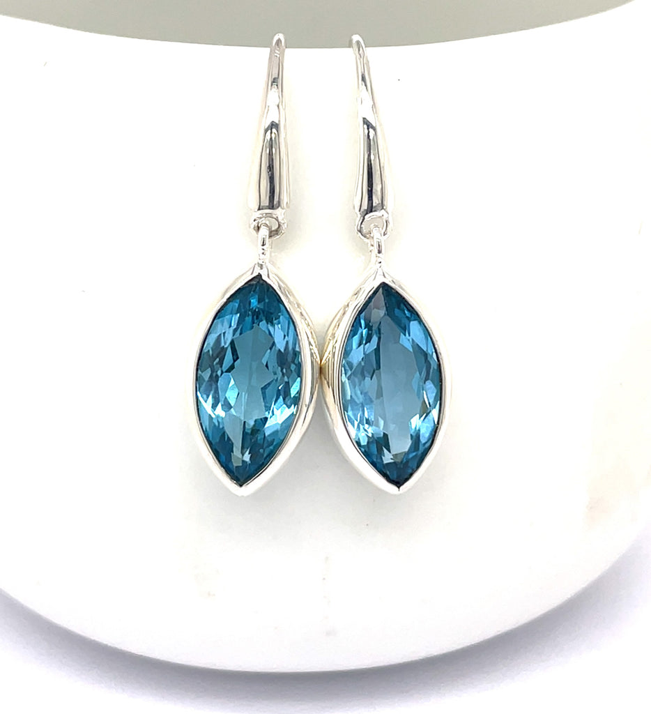 Kaleidoscope Marquise Cut Swiss Blue Topaz Earrings on Hooks