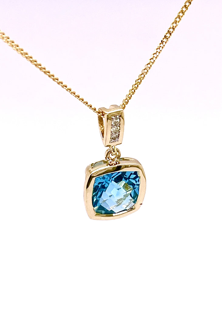 9ct Yellow Gold Blue Topaz and Diamond Pendant